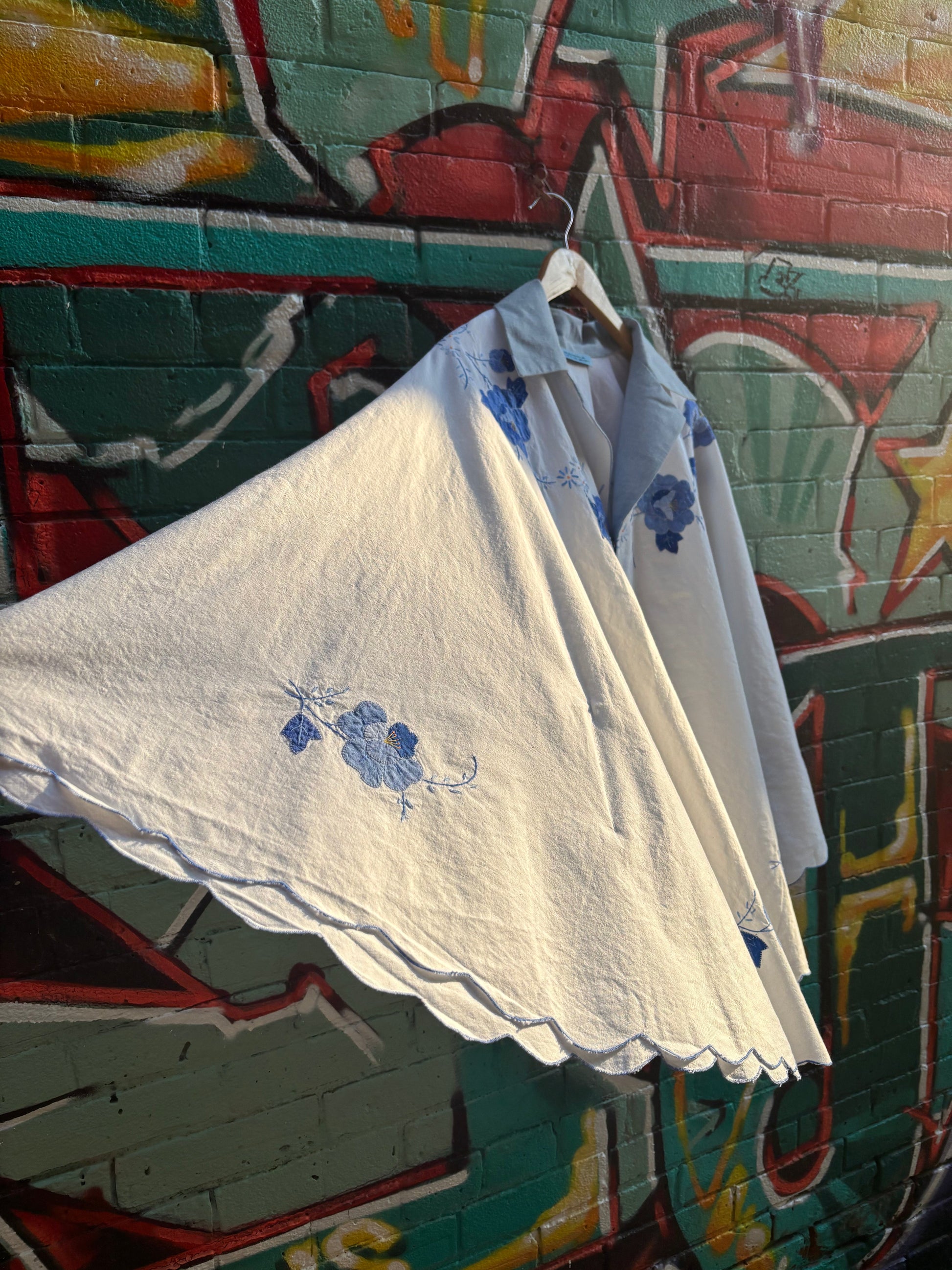 Cotton upcycled vintage tablecloth.