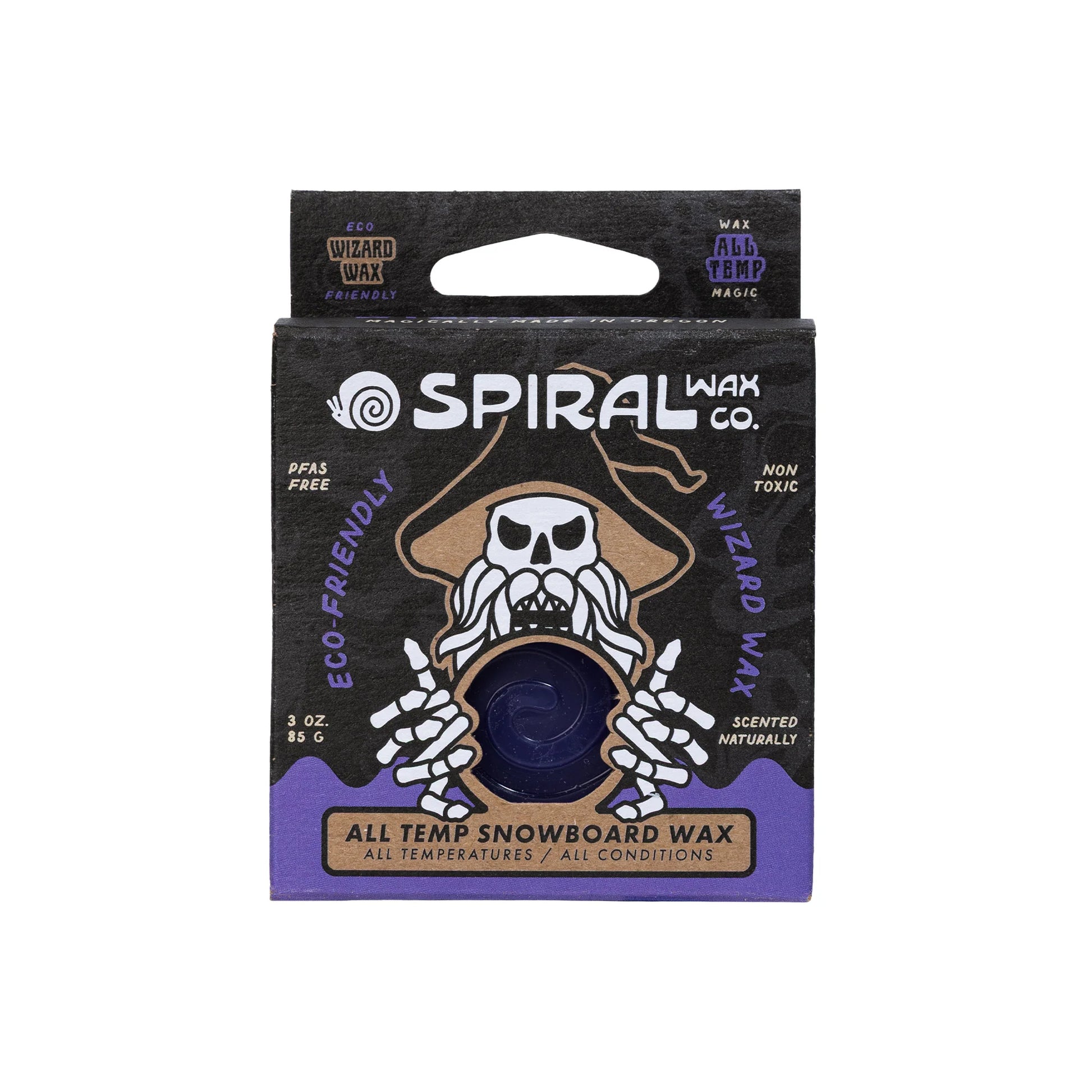 The world's first hybrid wax! Developed & tested by the spiral wax team. Magically made from a proprietary blend of natural and traditional wax ingredients to provide a fast and Eco-friendly experience. Where science meets magic! Wizard Artwork by: Dave Banks